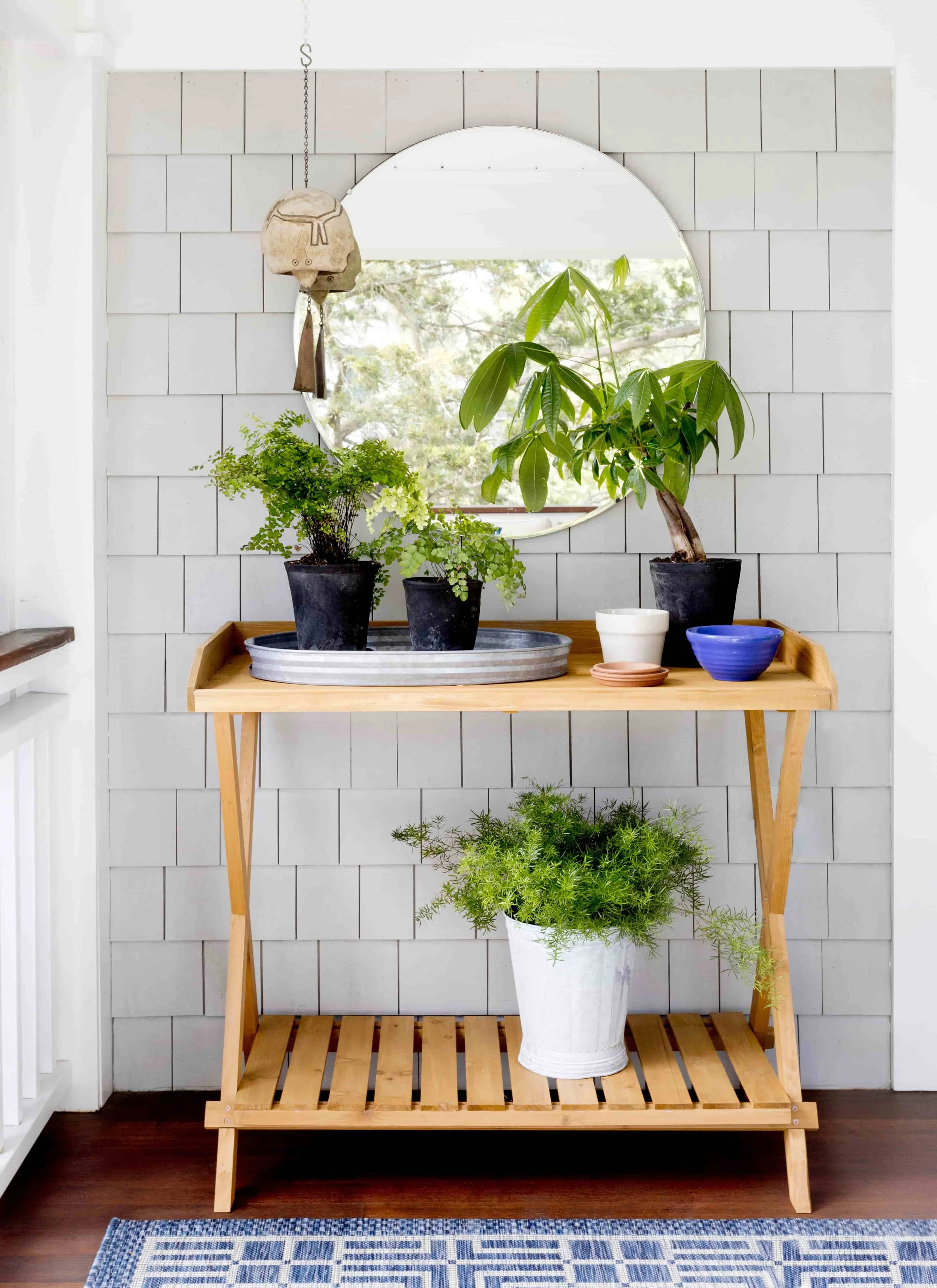 A screened porch, reimagined as a breezy, restorative extension of the homeāan easy blend of nature, comfort, and quiet charm. Caroline Kopp transforms a simple potting table into a focal point, layering plants, texture, and a reflective round mirror to frame the water views beyond. The result is a serene outdoor haven that feels both curated and effortlessly lived-in.